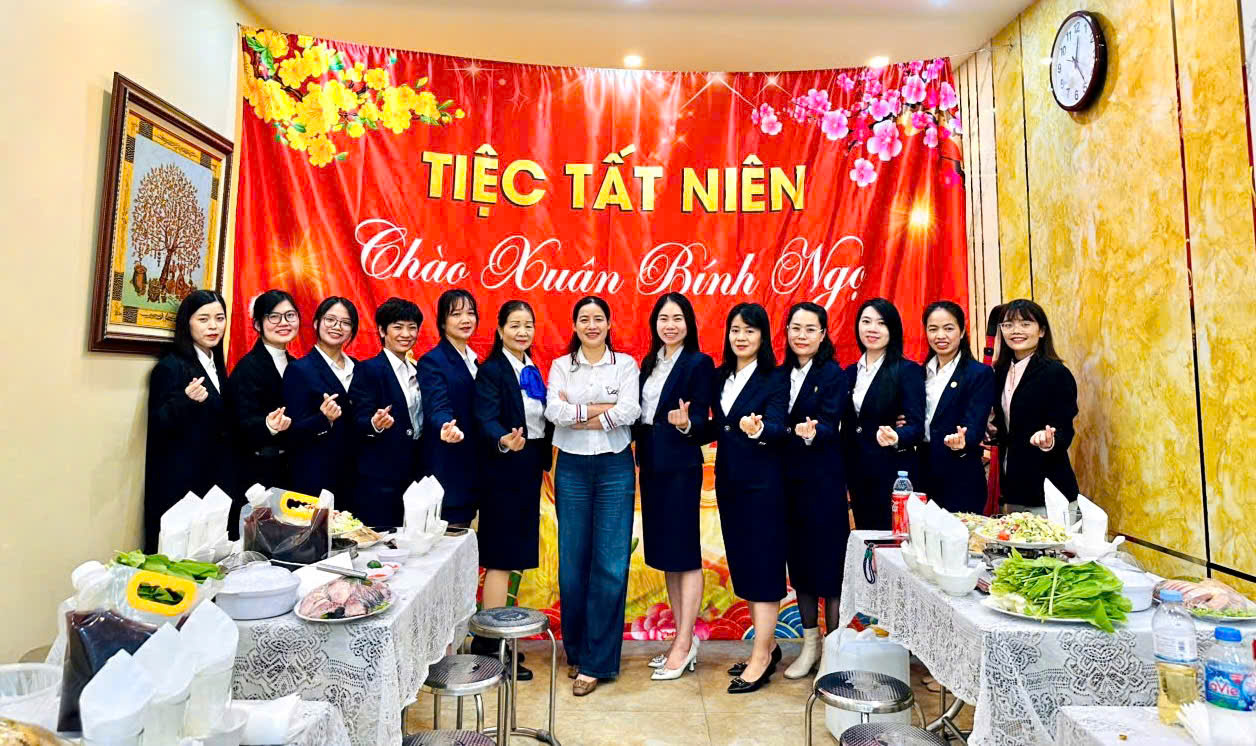 Buổi liên hoan diễn ra trong không gian ấm cúng, trang trọng với sự tham gia đông đủ của toàn thể cán bộ nhân viên công ty.