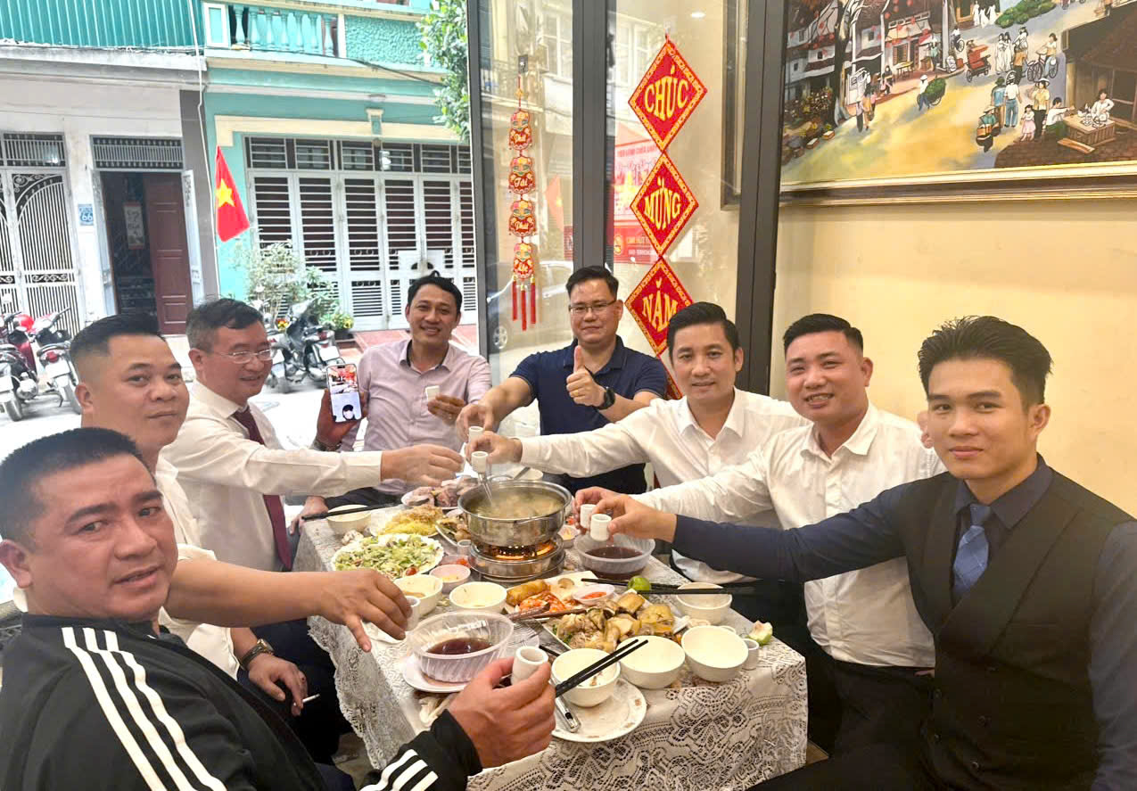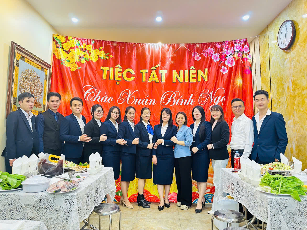 Tập thể công ty cùng dùng tiệc thân mật, chia sẻ niềm vui và thắt chặt thêm tinh thần gắn kết nội bộ.