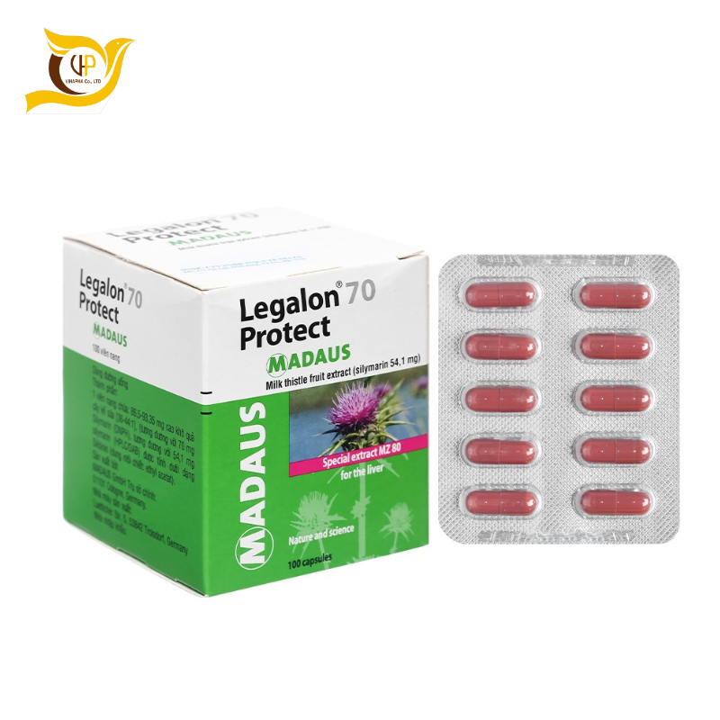 LEGALON 70 PROTECT MADAUS là thuốc từ dược thảo dùng để điều trị bệnh về gan. Nó được dùng điều trị hỗ trợ trong tổn thương gan do nhiễm độc ở những bệnh nhân bị bệnh viêm gan mạn tính hoặc xơ gan. Thành phần của thuốc Legalon 70 1 viên nang chứa 86.50 - 93.35mg cao khô của cây Sylibum marianum (36-44:1), tương ứng với 54.1mg silymarin (HPLC), được tính dưới dạng silibinin (dung môi chiết: ethyl acetat). Tá dược: Povidon, mannitol, polysorbat 80, tinh bột natri glycolat (type A), magnesi stearat, oxid sắt màu đỏ E 172, oxid sắt màu đen E 172, titan dioxid E 171, gelatin, natri Iaurilsulfat. Chỉ định công dụng của thuốc Legalon 70 LEGALON 70 PROTECT MADAUS là một dược thảo dùng để điều trị bệnh về gan. Nó được dùng điều trị hỗ trợ trong tổn thương gan do nhiễm độc ở những bệnh nhân bị bệnh viêm gan mạn tính hoặc xơ gan. Lưu ý: Điều trị bằng LEGALON 70 PROTECT MADAUS chỉ hữu ích khi loại trừ được chất độc gây tổn thương gan (ví dụ rượu). Chống chỉ định Không được dùng LEGALON 70 PROTECT MADAUS - Nếu bạn bị quá mẫn cảm (dị ứng) với quả cây Silybummarianum hoặc với bất kỳ thành phần nào của thuốc. Cảnh báo và thận trọng Lưu ý đặc biệt việc dùng LEGALON 70 PROTECT MADAUS Việc điều trị bằng thuốc này không phải là biện pháp thay thế để tránh khỏi nguyên nhân gây tổn thương gan (ví dụ rượu). Hỏi ý kiến bác sĩ nếu thấy vàng da (da nhuốm màu vàng nhẹ đến vàng sẫm, tròng trắng mắt đổi màu vàng). Chưa có đủ dữ liệu về việc dùng thuốc này cho trẻ em. Vì vậy, không dùng cho trẻ em dưới 12 tuổi. Dùng LEGALON 70 PROTECT MADAUS với thức ăn và thức uống: Không có hạn chế đặc biệt Thai kỳ Phụ nữ có thai Chưa có đủ dữ liệu về việc dùng LEGALON 70 PROTECT MADAUS cho phụ nữ có thai. Vì vậy, trong trường hợp này không nên dùng LEGALON 70 PROTECT MADAUS. Cho con bú Chưa có đủ dữ liệu về việc dùng LEGALON 70 PROTECT MADAUS cho phụ nữ cho con bú. Vì vậy, trong trường hợp này không nên dùng LEGALON 70 PROTECT MADAUS. Lái xe và sử dụng máy móc: Không có hạn chế đặc biệt. Đang dùng thuốc khác: Xin thông báo cho bác sĩ hoặc dược sĩ nếu bạn đang dùng hoặc mới đây đã dùng bất kỳ thuốc nào khác, ngay cả những thuốc không phải kê đơn. Tương tác với các thuốc khác Chưa được biết. Liều dùng của thuốc LEGALON 70 PROTECT MADAUS Phải luôn dùng LEGALON 70 PROTECT MADAUS chính xác như bác sĩ đã chỉ dẫn cho bạn. Bạn nên hỏi bác sĩ hay dược sĩ nếu bạn không biết chắc. Liều thường dùng là 2 viên nang, 3 lần/ngày, tương ứng với 420mg silymarin. Hỏi ý kiến bác sĩ hoặc dược sĩ nếu bạn có ấn tượng là tác dụng của LEGALON 70 PROTECT MADAUS quá mạnh hoặc quá yếu. Đường dùng: Đường uống Quá liều và xử trí Cho đến nay chưa rõ các dấu hiệu quá liều hoặc ngộ độc. Các tác dụng phụ có thể tăng lên. Nếu cần, hãy để bác sĩ của bạn quyết định biện pháp điều trị triệu chứng. Thông tin khác Nếu bạn quên dùng LEGALON 70 PROTECT MADAUS: Không được dùng một liều gấp đôi để bù cho các liều đơn đã quên. Tác dụng khi việc điều trị bằng LEGALON 70 PROTECT MADAUS bị ngừng lại: Chưa được rõ. Tác dụng không mong muốn Giống như tất cả các thuốc, LEGALON 70 PROTECT MADAUS có thể có các tác dụng phụ. Trong trường hợp hiếm gặp đã ghi nhận rối loạn tiêu hóa, ví dụ như tác dụng nhuận tràng nhẹ. Phản ứng quá mẫn cảm rất hiếm gặp như ban hoặc khó thở có thể xảy ra; trong trường hợp như thế ngừng điều trị và đến gặp bác sĩ. Nếu bạn gặp bất kỳ tác dụng phụ nào không được đề cập trong tờ hướng dẫn sử dụng này, xin thông báo cho bác sĩ hoặc dược sĩ. Bảo quản Bảo quản dưới 30°C. Để thuốc xa tầm tay của trẻ em. Không dùng thuốc quá hạn sử dụng đã ghi trên bao bì. Hạn dùng 60 tháng kể từ ngày sản xuất Đóng gói Hộp 10 vỉ x 10 viên nang.