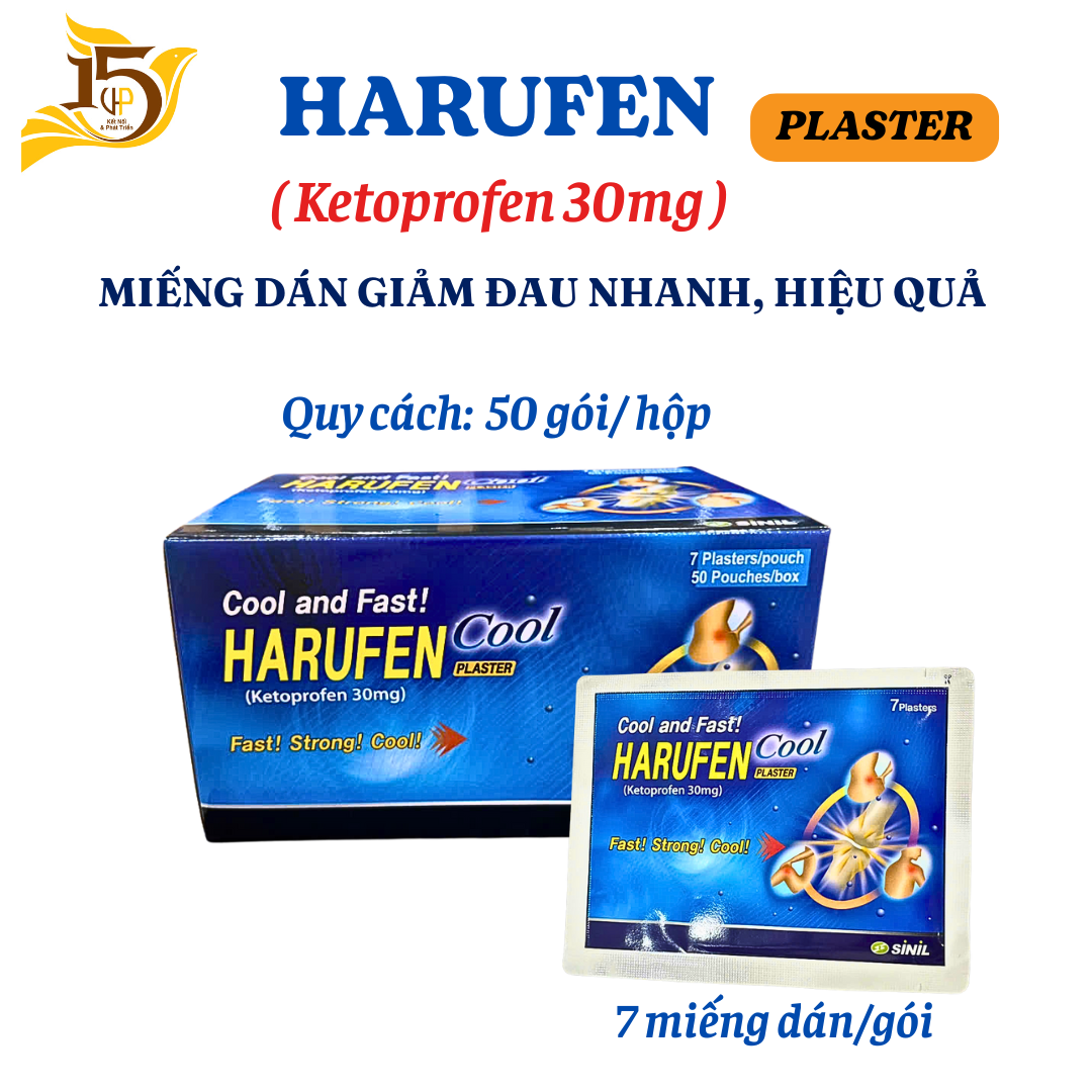 Harufen là miếng dán giảm đau, chống viêm không kê đơn, nổi bật với thành phần Ketoprofen 30 mg. Hoạt chất này thuộc nhóm NSAID, giúp ức chế sinh tổng hợp prostaglandin, nhờ đó mang lại hiệu quả giảm viêm, giảm đau. Harufen đặc biệt tiện lợi khi chỉ cần dán 2 lần mỗi ngày và đã được chứng minh có hiệu quả cao, cải thiện tới hơn 80% trường hợp sưng đau sau chấn thương. Ngoài ra, sản phẩm không ảnh hưởng đến khả năng lái xe hay vận hành máy móc. Tuy nhiên, người dùng cần lưu ý nguy cơ nhạy cảm ánh sáng và viêm da, do đó cần che chắn vùng dán khỏi ánh nắng. Harufen chống chỉ định cho người mẫn cảm với Ketoprofen, phụ nữ cuối thai kỳ và phụ nữ cho con bú. Đây là lựa chọn phù hợp cho người gặp vấn đề về viêm khớp, viêm gân hoặc sưng đau sau chấn thương.