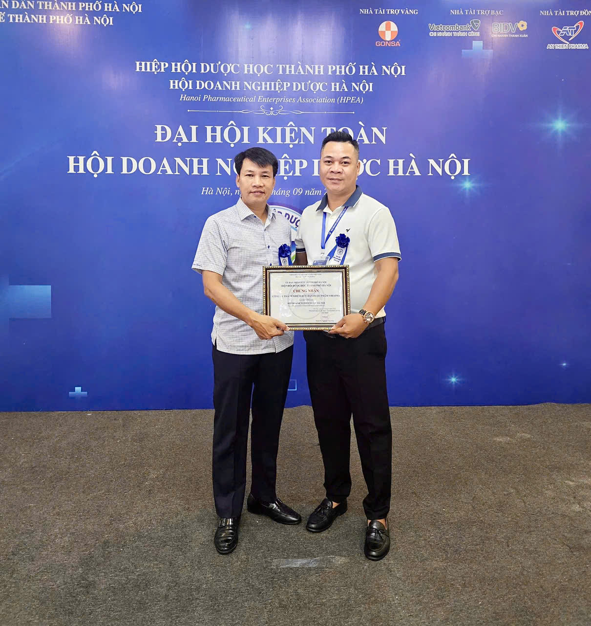 Ảnh: Ban lãnh đạo công ty TNHH Dược Phẩm Vihapha tham dự hội nghị và nhận giấy chứng nhận hội viên